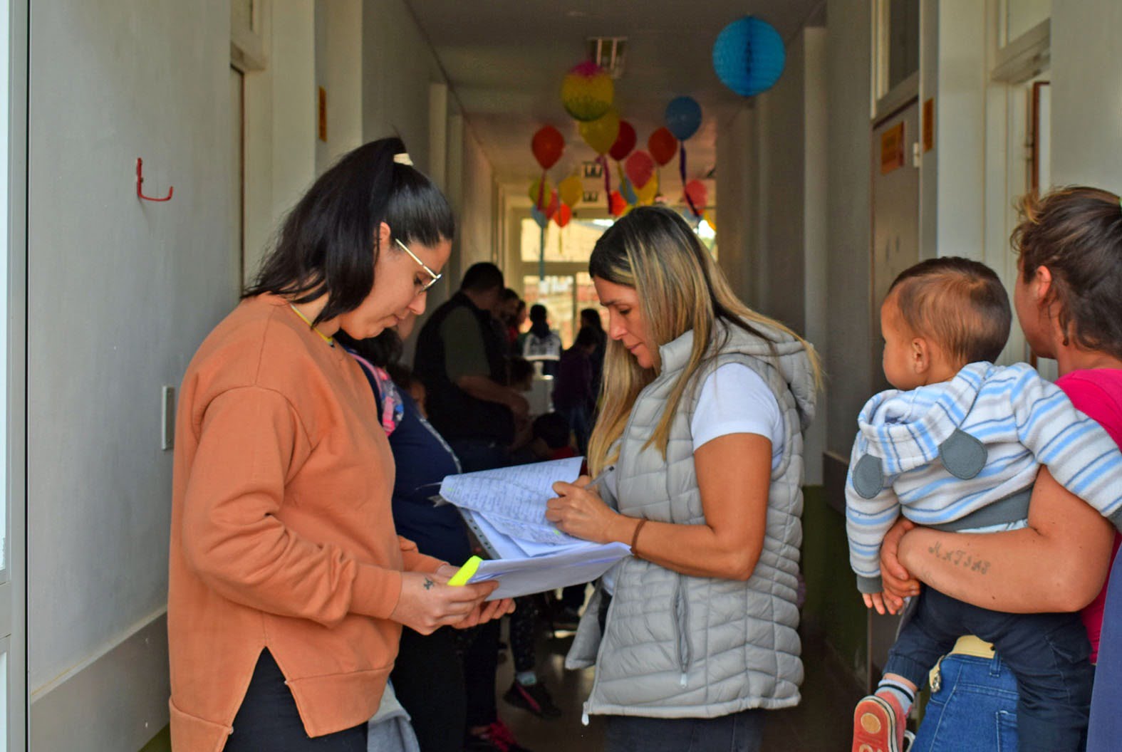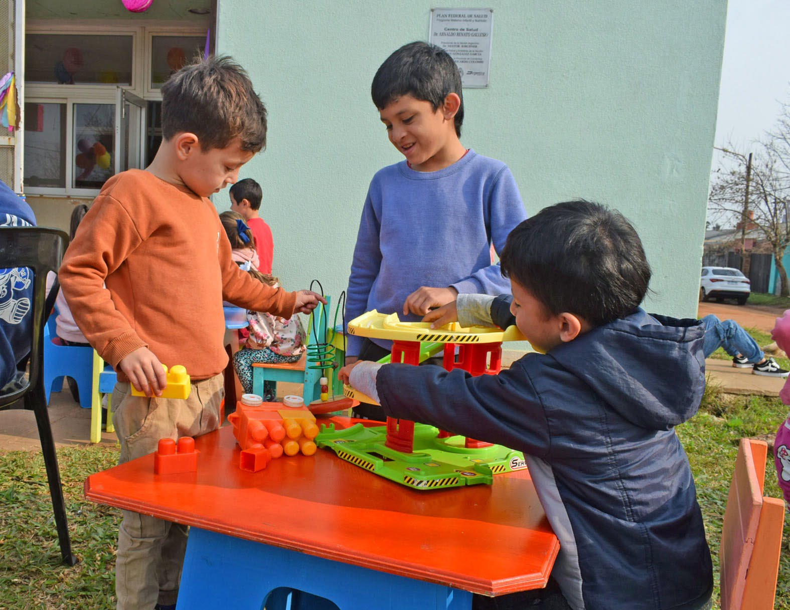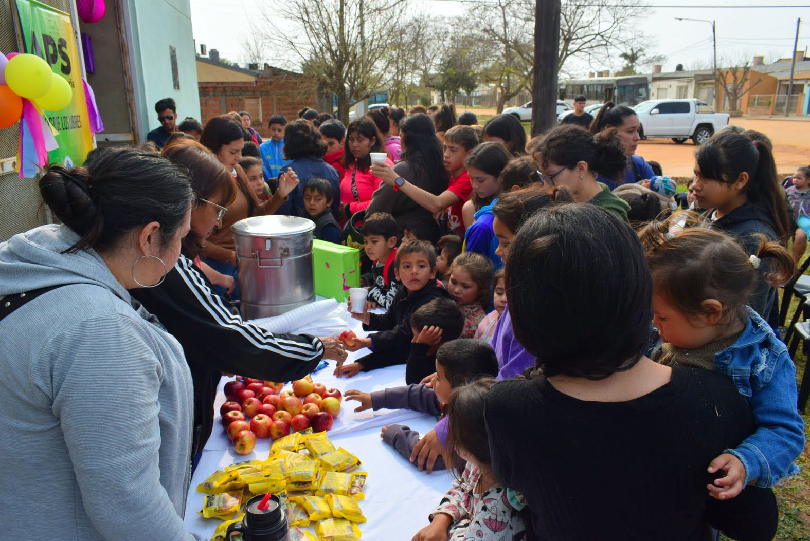 En un sector del CAPS N°9, ubicado en el barrio “Joaquín Madariaga”, se instaló un área de entrenamiento para que a los gurises la espera se les haga más amena, con peloteros y sector de juegos didácticos; amén de haberse servido un exquisito chocolate, snacks saludables y frutas frescas.