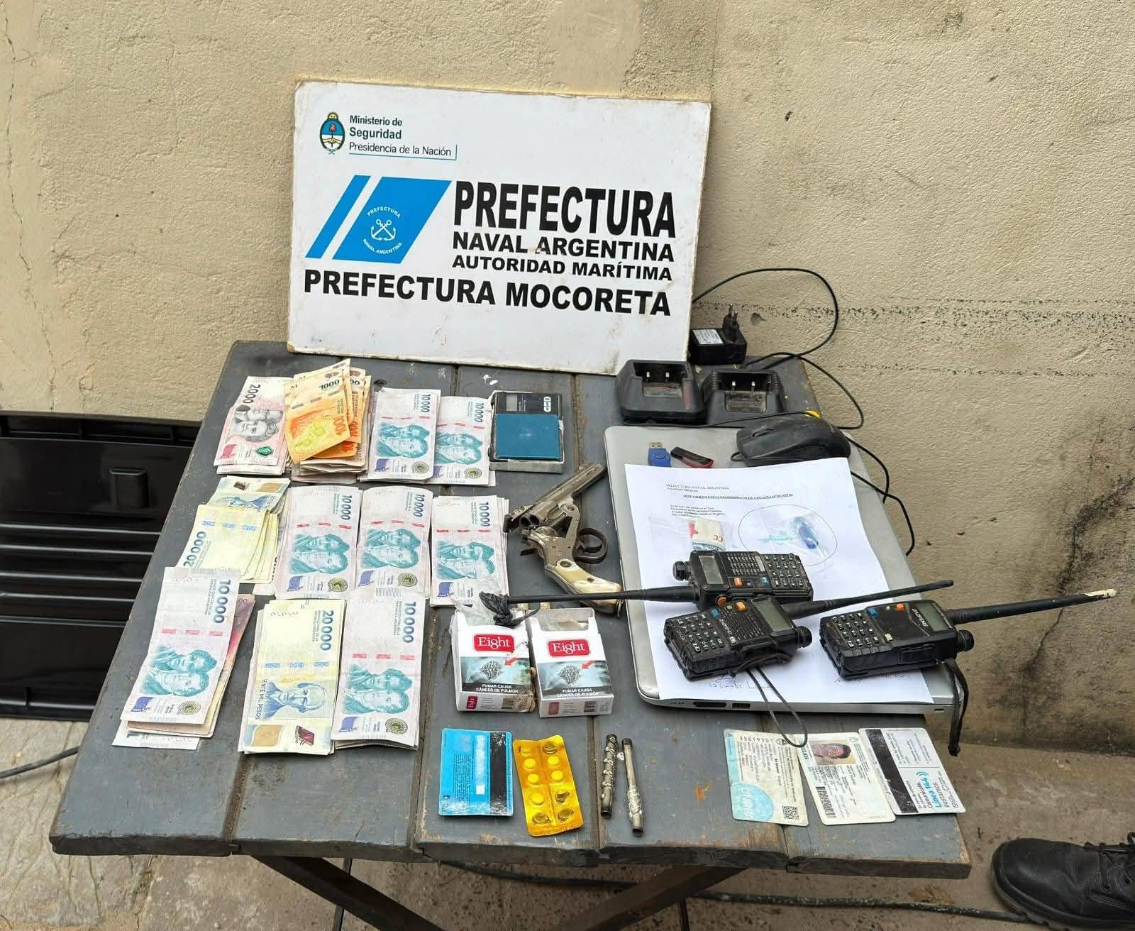 En un operativo simultáneo realizado ayer, la Prefectura Naval Argentina (PNA) detuvo a una persona y secuestró drogas, un arma de fuego, municiones, equipos de comunicación de frecuencia policial y vehículos en el marco de dos allanamientos realizados en la localidad de Mocoretá.