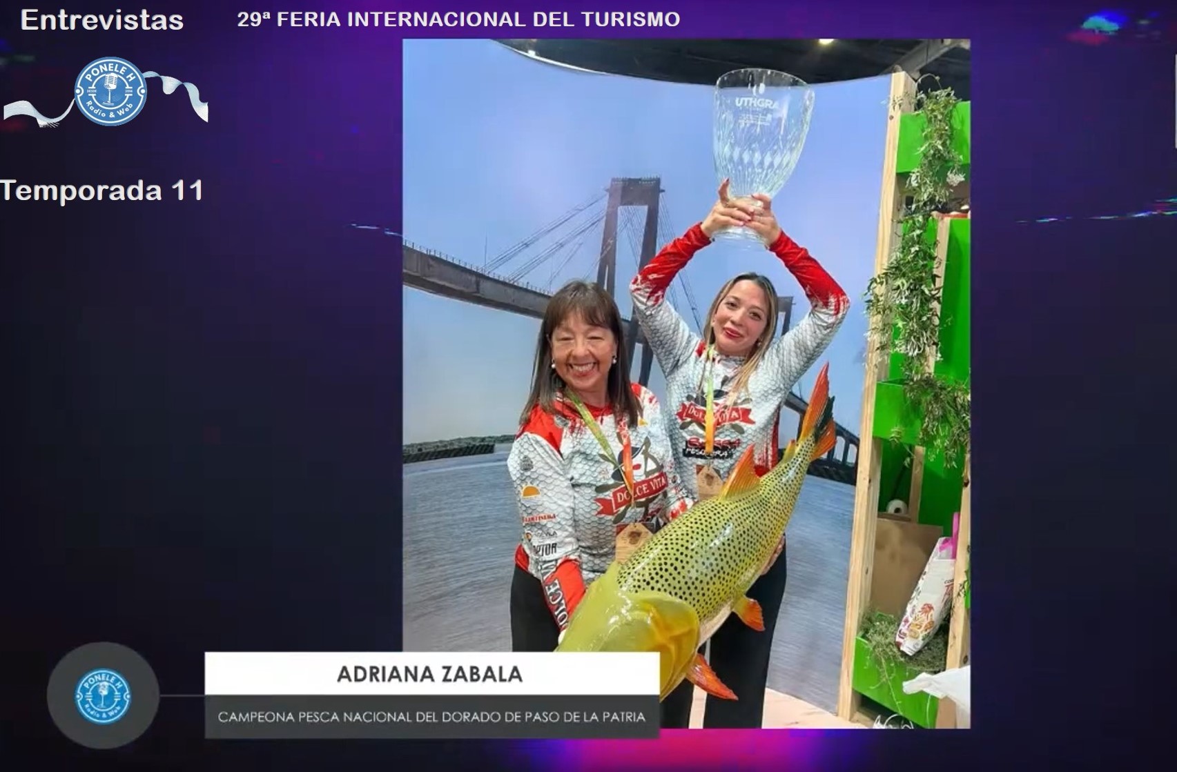 En PONELE H Radio-TV se compartieron tres entrevistas logradas por el periodista “Pity” Benítez. con María Elvira Usandizaga, presidente de la Cámara de Turismo de Mercedes; Adriana Zabala, campeona nacional de la Pesca del Dorado en Paso de la Patria; y Gabriela Valenzuela, senadora nacional y autora del Proyecto de Ley para el “Pasaporte Sanmartiniano”.
