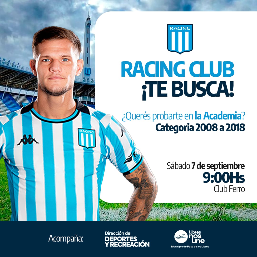 Mañana (sábado 7/9) a las 9 horas en el Club Ferro-Pumitas, referentes del Racing Club de Avellaneda realizarán pruebas de jugadores para las categorías 2008 a 2018.