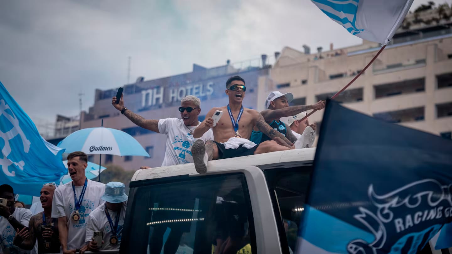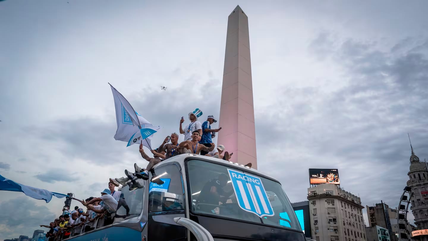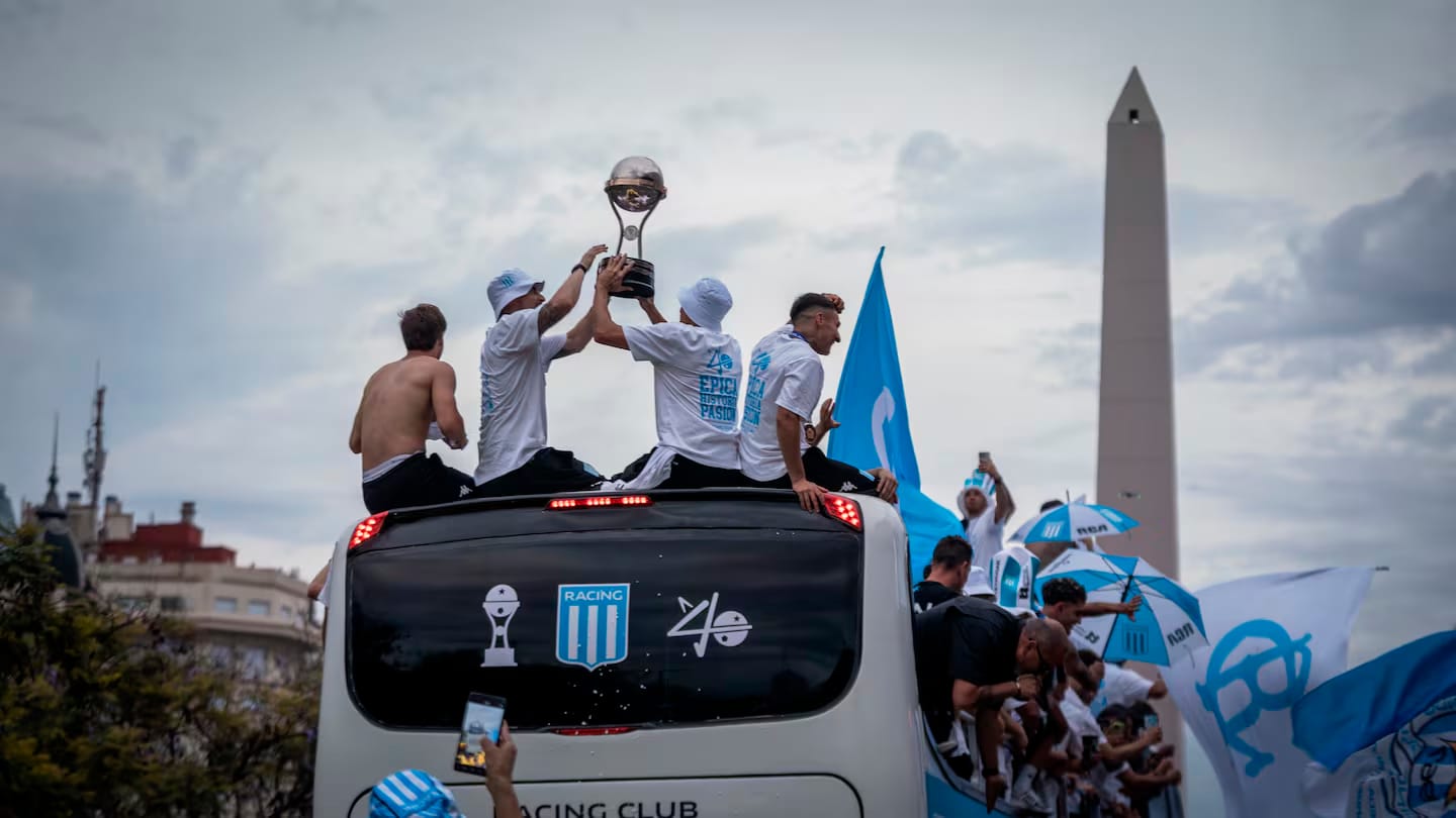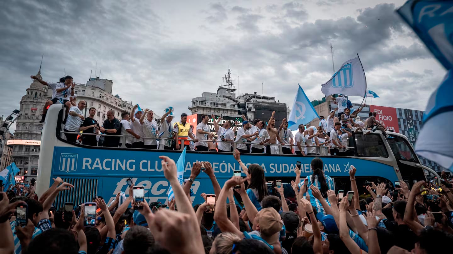 Racing protagonizó ayer de tarde un enorme festejo en el Obelisco tras la obtención de la Copa Sudamericana.