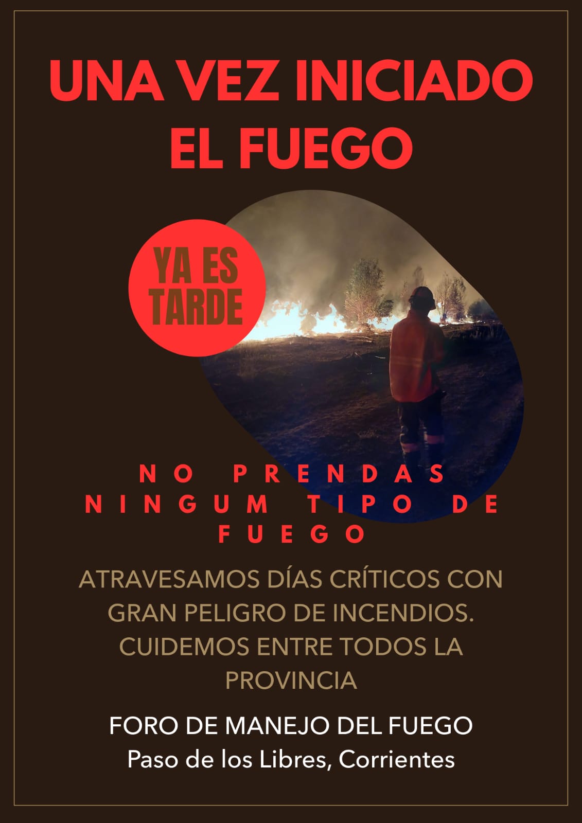 El Foro de Manejo del Fuego de Paso de los Libres es una agrupación integrada por productores ganaderos y forestales, brigadistas, contratistas rurales, empresas, bomberos y vecinos de distintas localidades del Sur correntino, que trabaja de manera coordinada para prevenir y combatir incendios rurales y forestales.