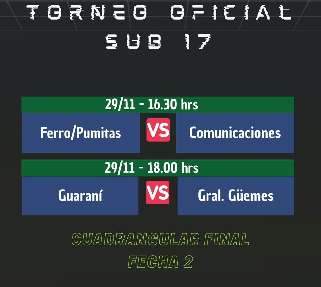 El sábado 29 de noviembre continuará la definición del Torneo Oficial Sub17 de la Liga Libreña de Fútbol (LLF), con la disputa de la segunda fecha del Cuadrangular Final.