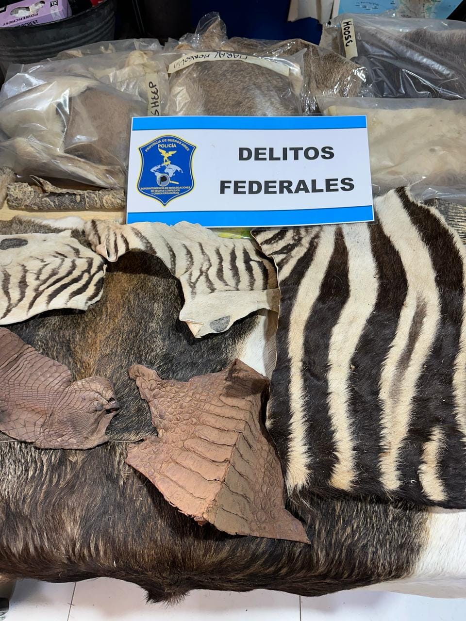 Se trata de piezas de la fauna silvestre autóctona, como pieles de pecarí y yacaré. Fueron incautadas taxidermias de especies exóticas provenientes de América del Norte, Asia y África. Fue en Berazategui, provincia de Buenos Aires.