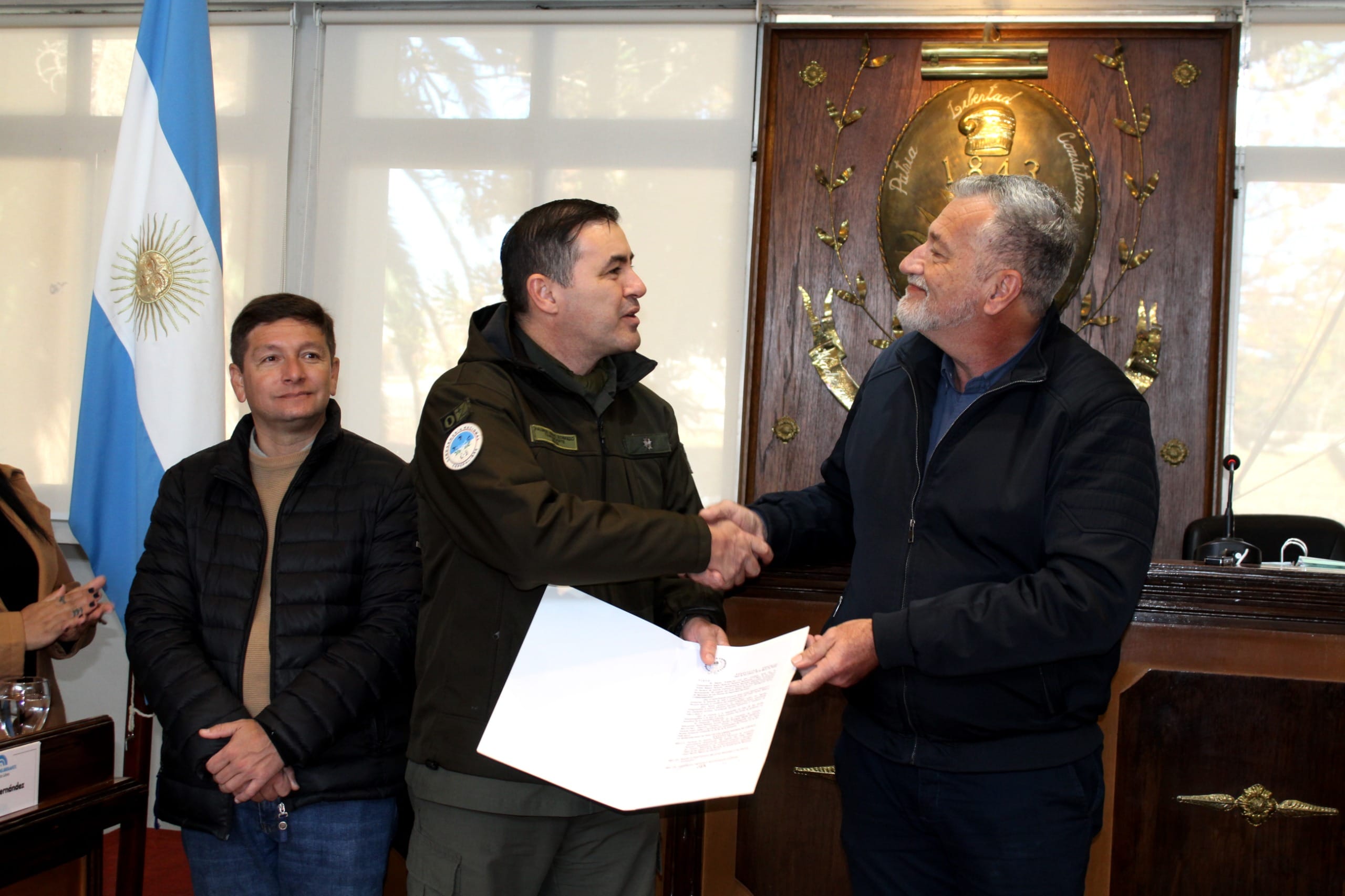 Por otra parte, durante un cuarto intermedio se realizó la entrega formal de la Resolución Nº010/25 CD al comandante Ángel Roberto Palmeri, director del Centro Educativo de Perfeccionamiento Específico “Paso de los Libres”.