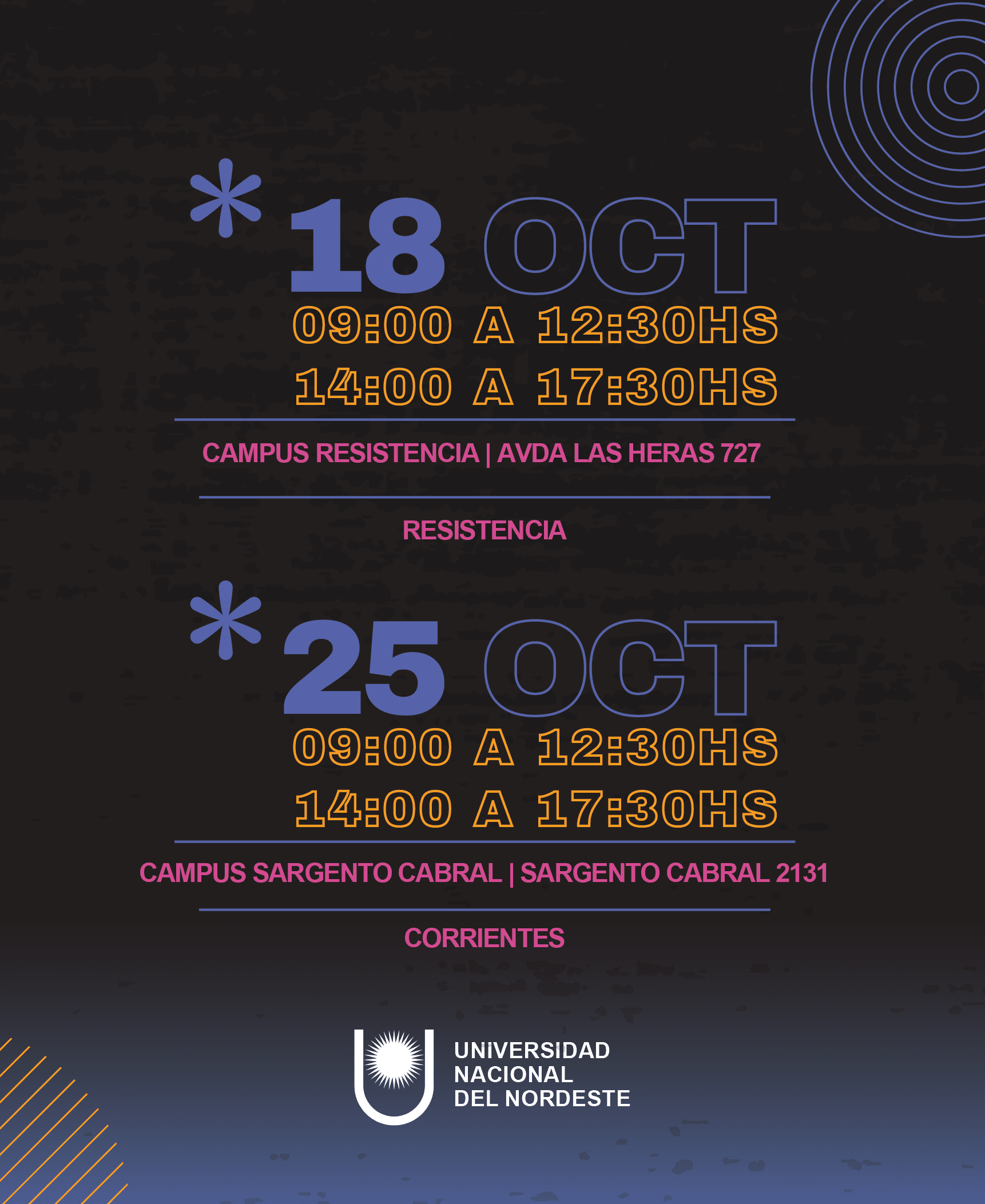 El 18 de octubre serán las acciones centrales en el Campus Resistencia y el 25 de octubre en el Campus Sargento Cabral, de Corrientes, pero se proyectan actividades a lo largo de toda esa semana.