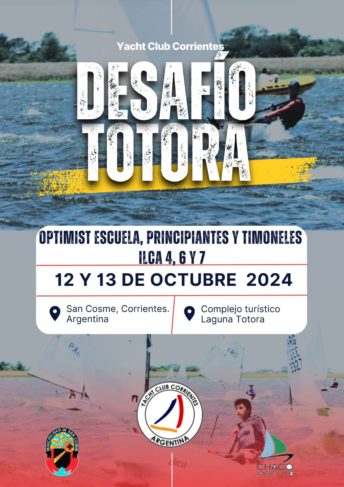 El Complejo Turístico “Laguna Totora”, de la localidad correntina de San Cosme, albergará una nueva edición de la prueba náutica “Desafío Totora”, pautada a ocho regatas en cada una de las categorías.