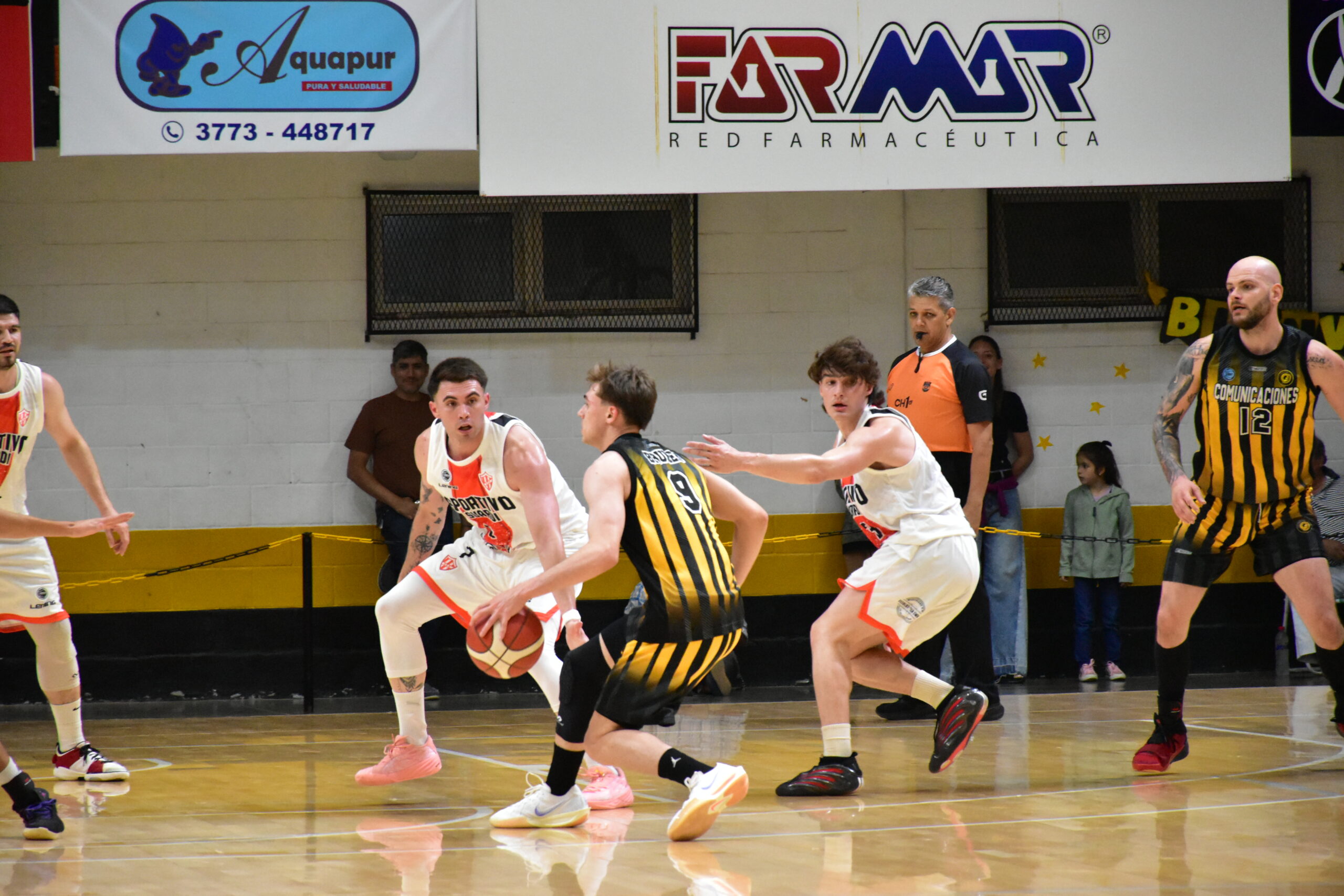 Sportivo Suardi se llevó un valioso triunfo de Mercedes en el inicio de su gira por el NEA al ganarle a Comunicaciones 85 a 78 en un juego que se definió en tiempo suplementario. Calderón volvió a ser el goleador en el equipo de Santa Fe con 18 unidades mientras que en el aurinegro fue Tomás Allende con 16.