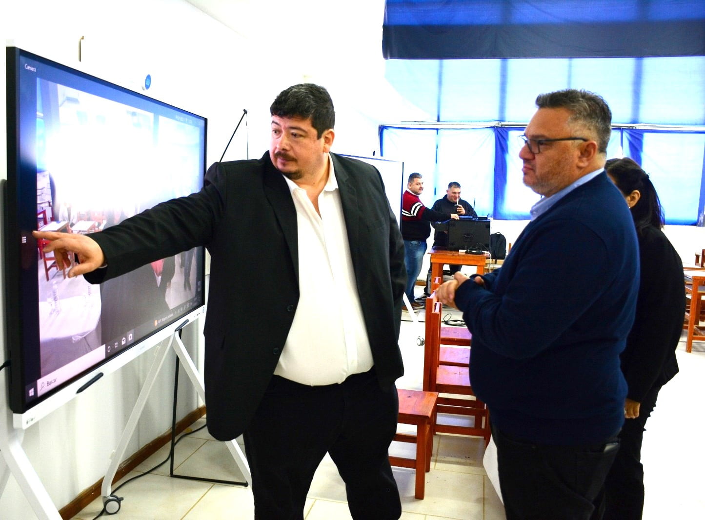 La instalación de dos pantallas inteligentes, una adquirida por la Municipalidad local y otra donada por la proveedora de servicios de internet Cibernek, posibilitan multiplicar el dictado de clases e incluso la incorporación de nuevas carreras al generar “aulas espejo”.