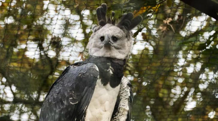 El águila harpía es una de las aves rapaces más grandes del mundo, siendo la hembra más grande que el macho, alcanzando más de dos metros de envergadura y un peso de hasta 7 kilogramos. Es reconocida por sus plumas grises con una cresta de dos puntas en la cabeza.