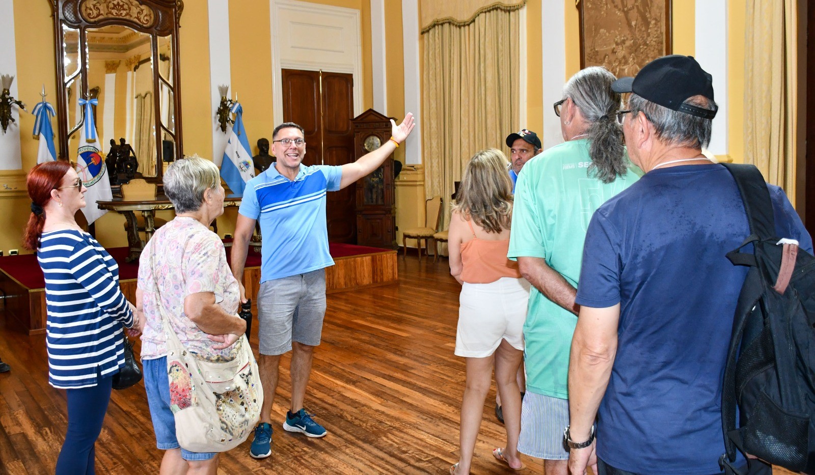 En el marco de la visita de un contingente de 20 turistas brasileños a la ciudad de Corrientes, Eduardo La Rosa, de la Dirección de Promoción Turística de la Municipalidad, acompañó a la delegación en un recorrido guiado por distintos puntos emblemáticos de la capital provincial –entre ellos, Casa de Gobierno- destacando el valor del intercambio cultural a través del chamamé.