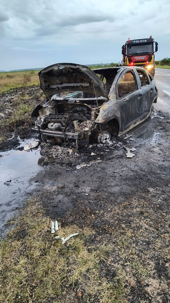 El vehículo implicado, un Citroën C-3 conducido por una persona de apellido Celedón y acompañado por una mujer, impactó con el animal silvestre. Tras la colisión, el rodado se incendió en la banquina, y las llamas se extendieron a pasturas cercanas.