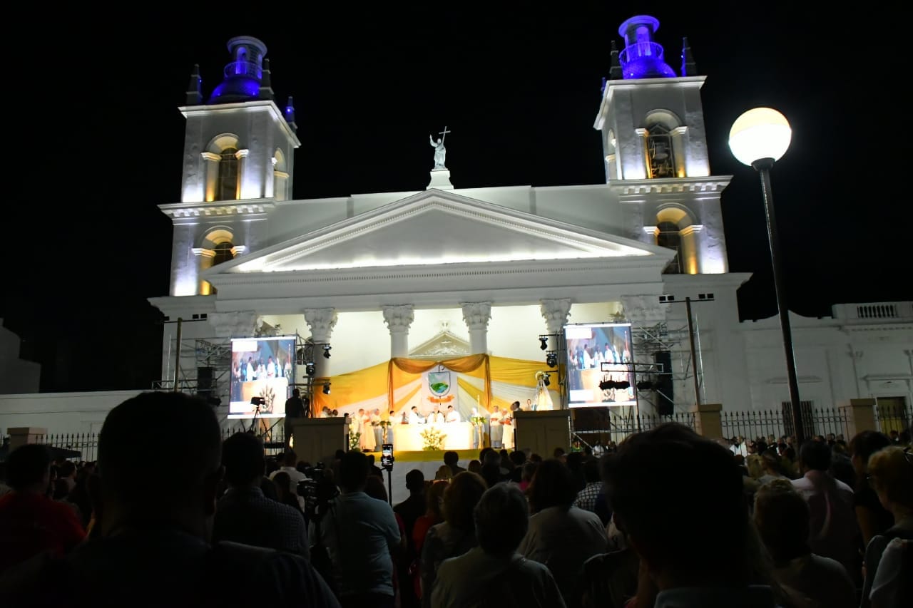 Desde las 19,30 horas del viernes 27/12 se comenzaron a recibir a las sagradas imágenes de la réplica de la Cruz de los Milagros y de la peregrina de Nuestra Señora de Itatí en el atrio de la Iglesia Catedral. Mientras que a las 20 horas inició la celebración religiosa con la interpretación del Himno Nacional, a cargo de la Banda de Música del Servicio Penitenciario Provincial (SPP).