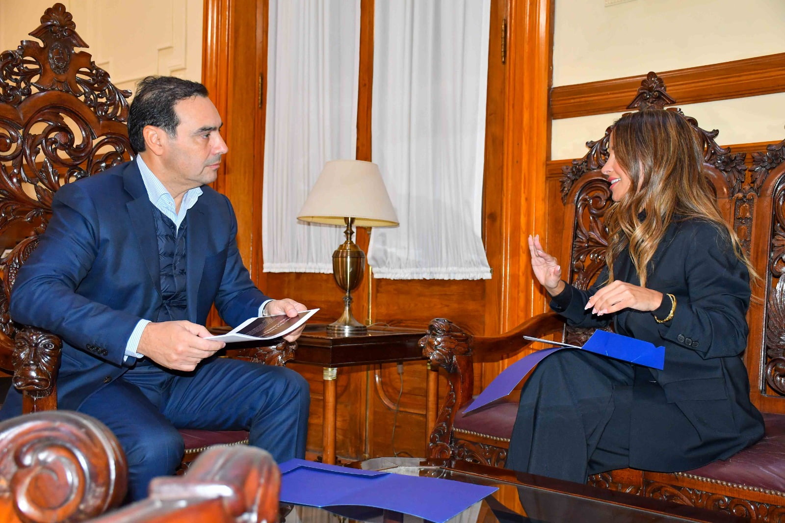 El viernes, Valdés y Sánchez tuvieron una reunión en Casa de Gobierno, luego se dirigieron hasta el teatro para recorrer las obras de refacción y restauración que actualmente se llevan a cabo en el edificio. Allí se sumaron a la recorrida el ministro de Obras Públicas, Claudio Polich y el director de Artes Escénicas, Eduardo Sívori.