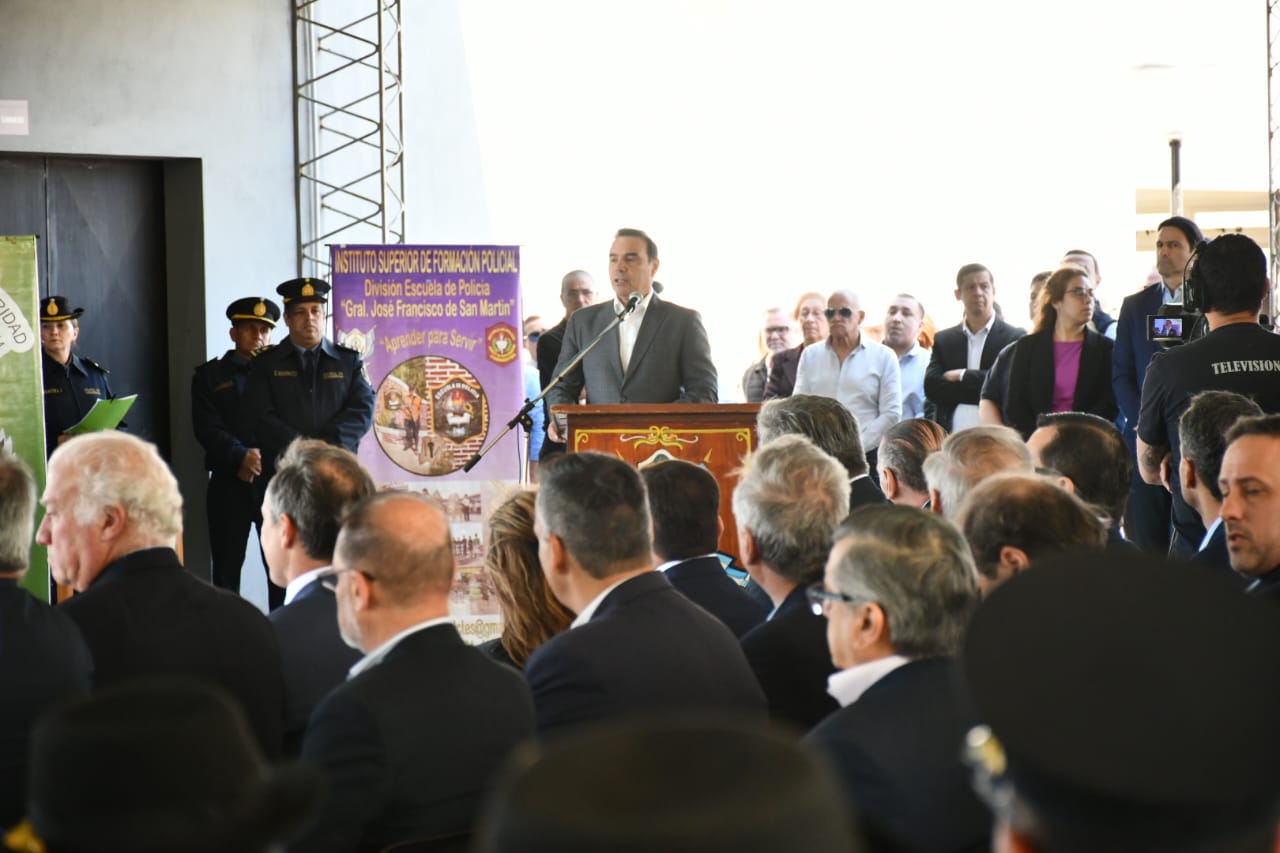 Al continuar con sus conceptos, el Gobernador dejó en claro que los desafíos para la fuerza policial son cada vez más complejos. “Hace tan solo dos años no teníamos inteligencia artificial. El delito ha evolucionado notoriamente y también debemos hacer las adaptaciones legislativas fundamentales para los tiempos que corren”, aseveró.