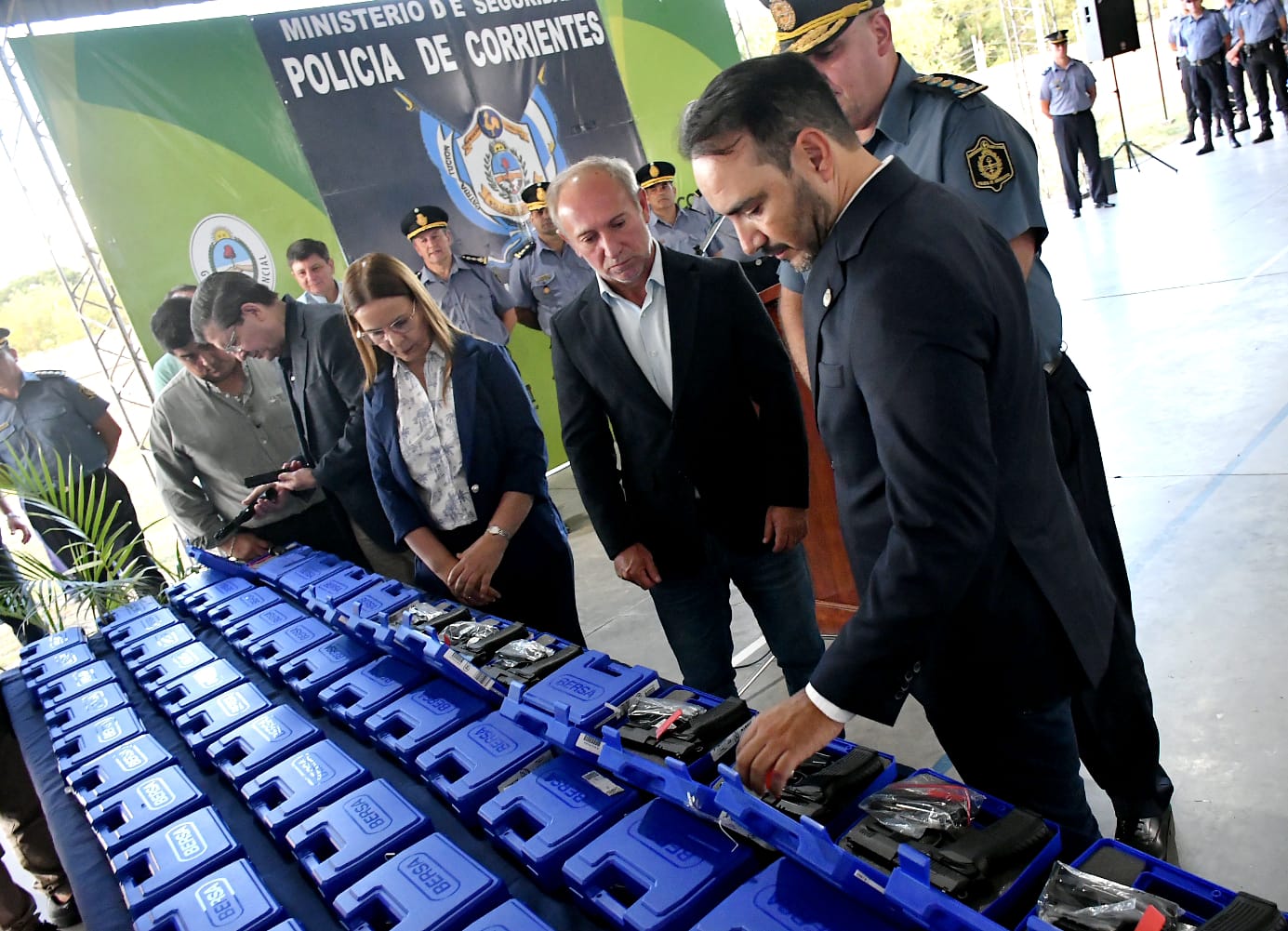 En el Complejo Formativo Policial (ex Regimiento Santa Catalina), el gobernador Juan Pablo Valdés encabezó ayer la entrega de armamentos a los 198 nuevos oficiales subayudantes -quienes fueron nombrados recientemente- de la 53° promoción de la Policía de Corrientes. En el respectivo acto protocolar, el Mandatario reafirmó el respaldo institucional a la fuerza y la continuidad de una política de inversión en formación y equipamiento para fortalecer la seguridad en toda la provincia. En ese marcó aseguró que ” Estamos respaldando fuertemente a la Policía”.
