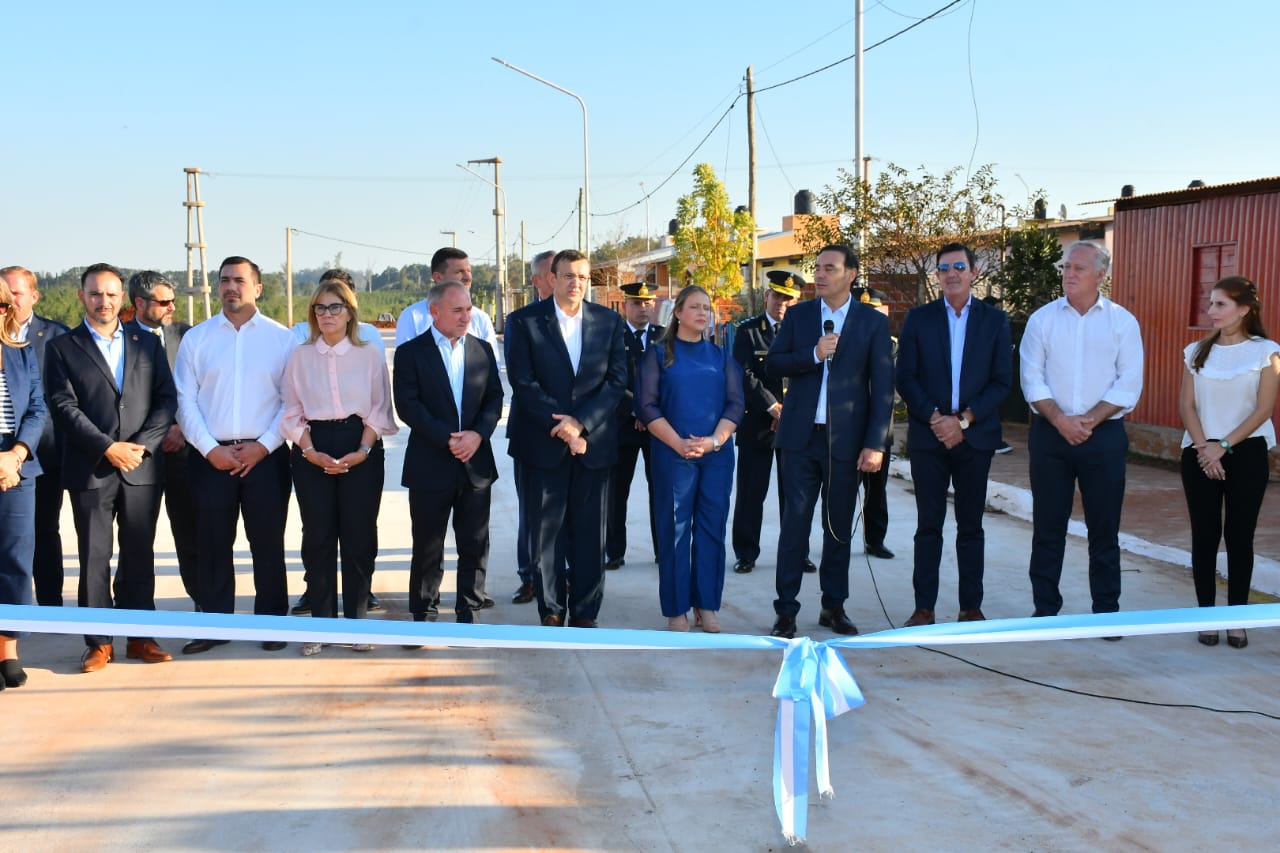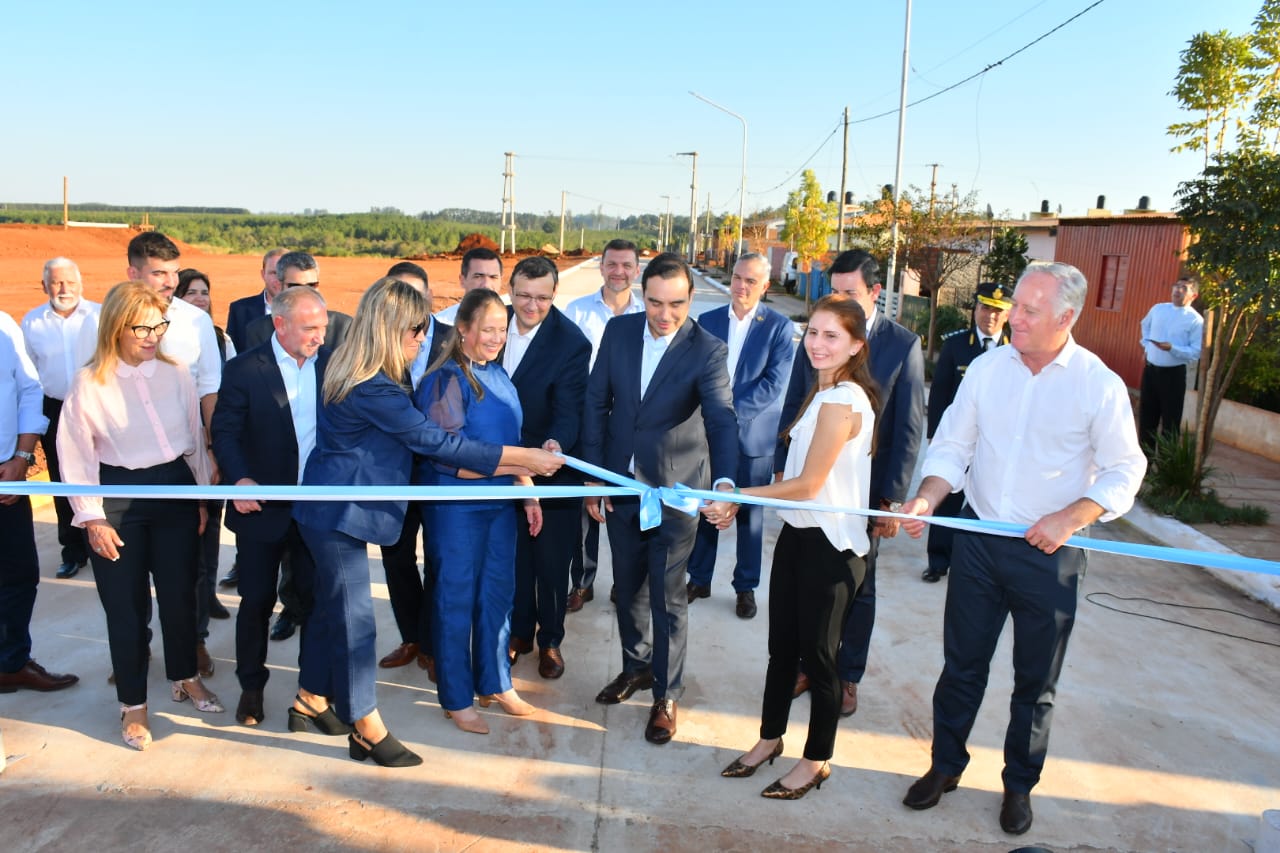 Antes del acto de las viviendas, el gobernador Valdés y la intendenta Kowacz inauguraron 14 cuadras de pavimento de calles pertenecientes a la zona del barrio 29 de Mayo, entre las que se encuentran Mariano Moreno y Shuntheim, entre otras, lugar donde se concretó el acto.