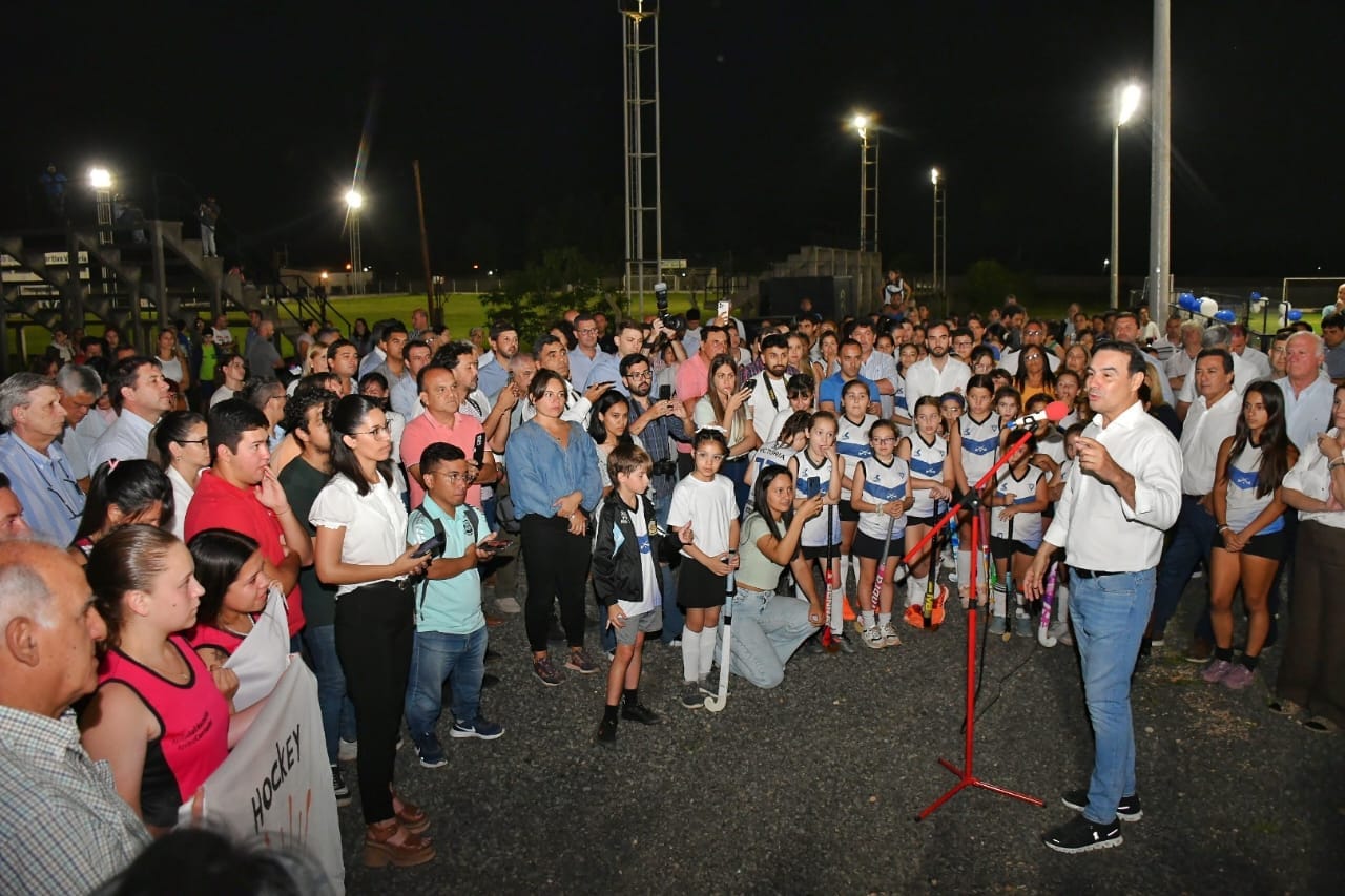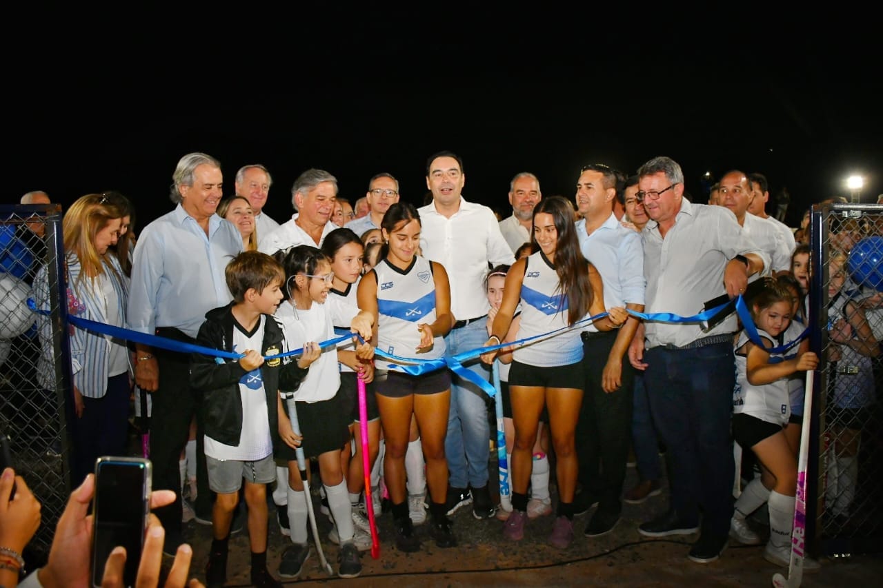 Cerca de las 21, el gobernador Gustavo Valdés se trasladó hasta la cancha del Club Victoria para dejar inaugurada la nueva cancha sintética para la práctica de hockey.