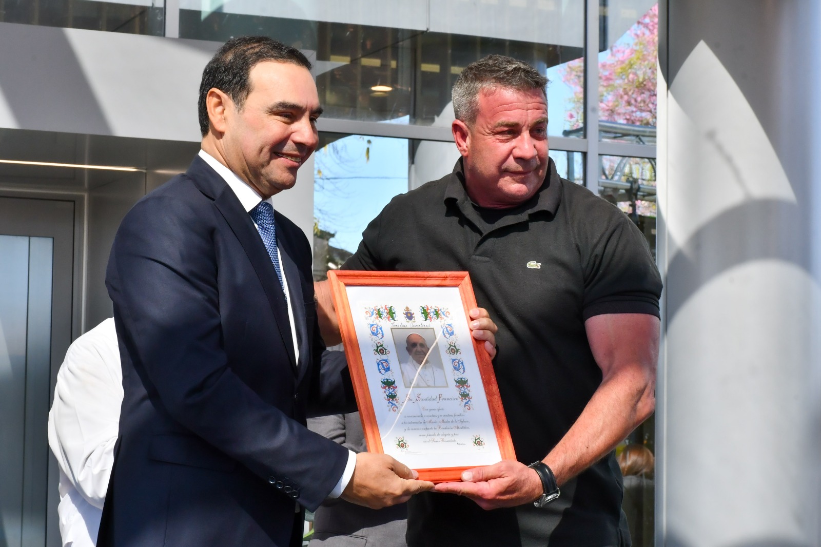 Durante la inauguración del Instituto Oncológico de Corrientes, Juan Fernández Xifra, sobrino-nieto del recientemente fallecido papa Francisco, entregó al gobernador Gustavo Valdés una bendición apostólica escrita y firmada de puño y letra por el pontífice.
