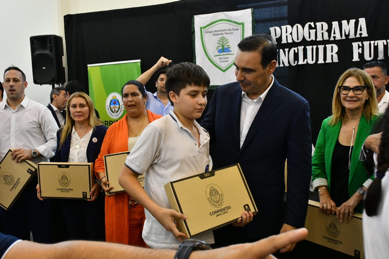 El Mandatario correntino habilitó también el portal de acceso sobre la Ruta 12. Entregó 153 netbooks del programa “Incluir Futuro” en diferentes instituciones del Paraje de Ensenada Grande. En la oportunidad, además, se realizó el corte de cinta del JIN N°50.