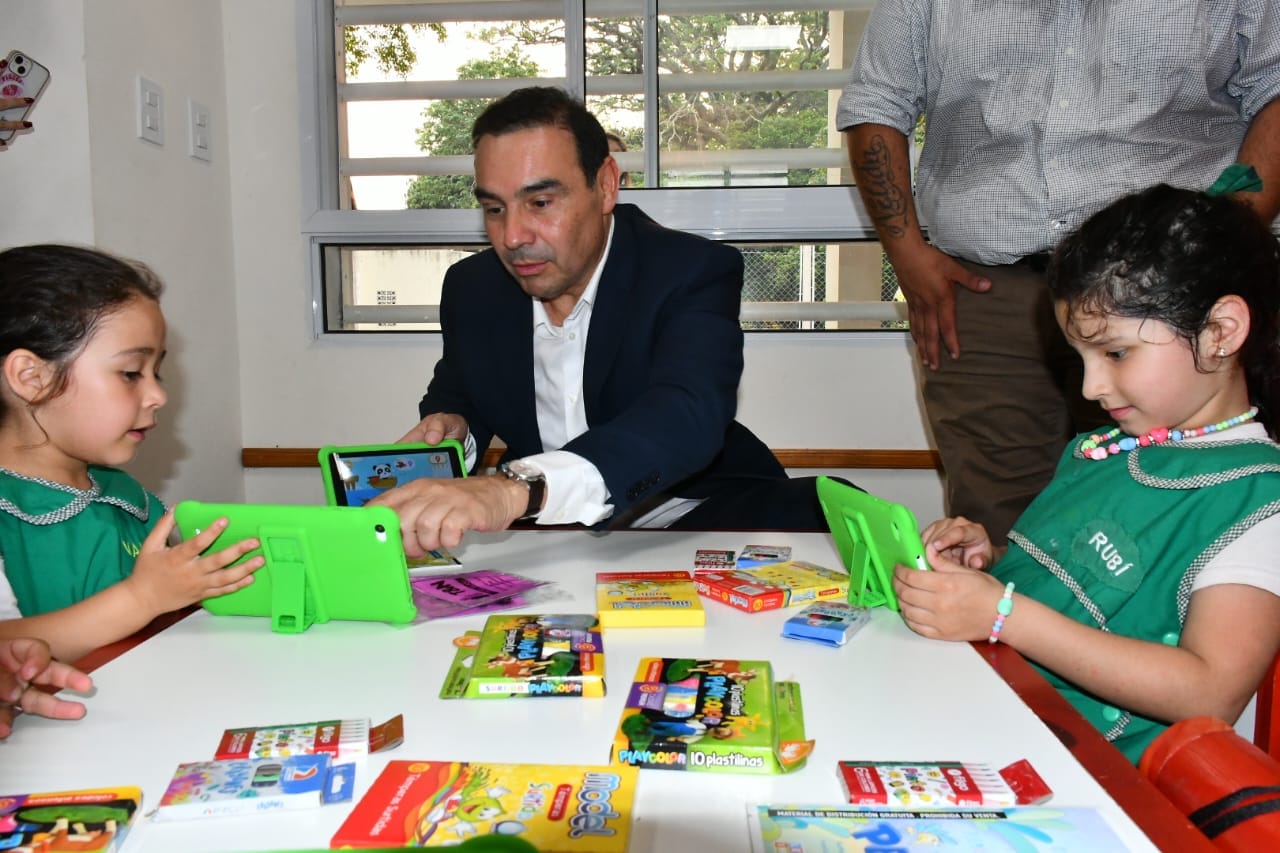 Además, a los niños del Jardín de Infantes inaugurado, el Gobernador les entregó las Tabis de Mitaí Digital.