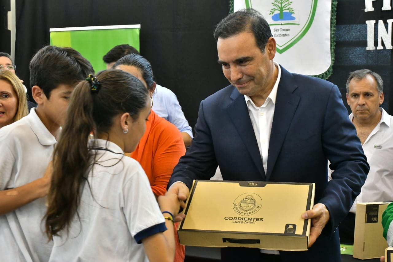 Iniciando una amplia agenda de actividades en el Departamento San Cosme, el gobernador de Corrientes, Gustavo Valdés, presidió ayer la apertura del JIN N°50 del paraje Ensenada Grande y, en la escuela contigua, encabezó la entrega de 153 netbooks del programa “Incluir Futuro”.