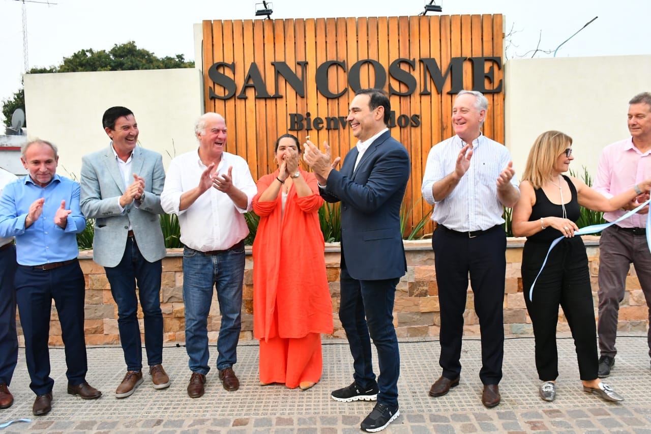 Seguidamente, el gobernador Valdés se dirigió hasta el ingreso de San Cosme para inaugurar el portal de acceso con la presencia de la intendente sanscomeña, los ministros Olivieri, Gaya y López, y los senadores Sergio Finta y Henry Fick.