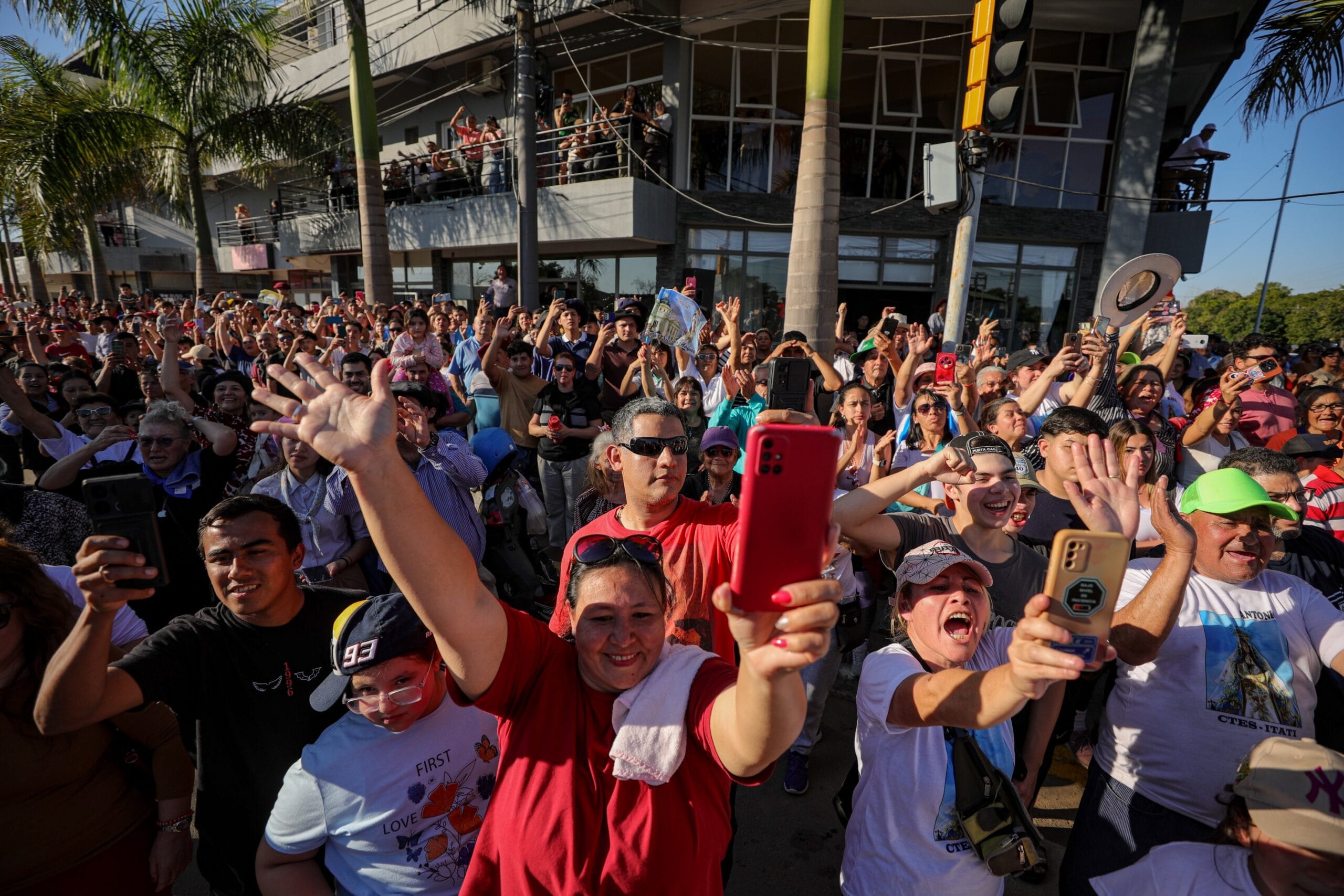Junto a millares de fieles, el gobernador de Corrientes, Gustavo Valdés, llegó hoy a la Basílica de Nuestra Señora de Itatí en el marco de la 125ª peregrinación proveniente de San Luis del Palmar.