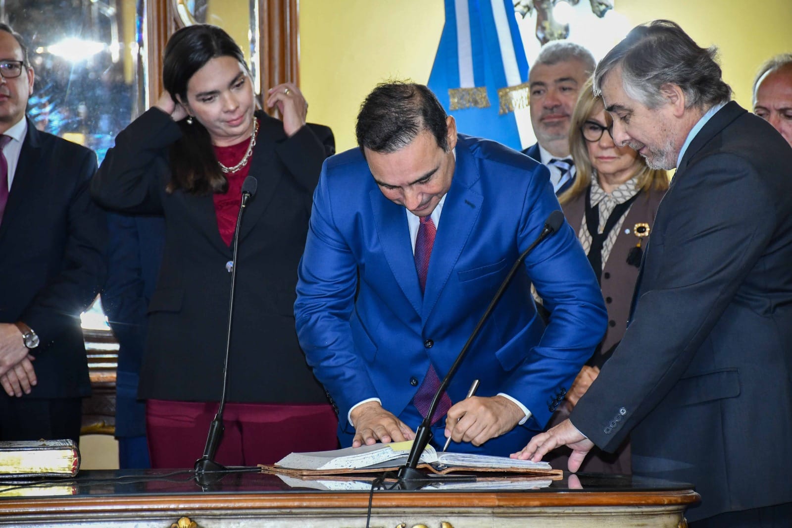 Luego, el escribano mayor de Gobierno, Rolando Battilana, a cargo de la fiscalización del acto, leyó el acta correspondiente, tras lo cual el gobernador Valdés tomó juramento de ley de posesión del cargo a la flamante titular de la Cartera.