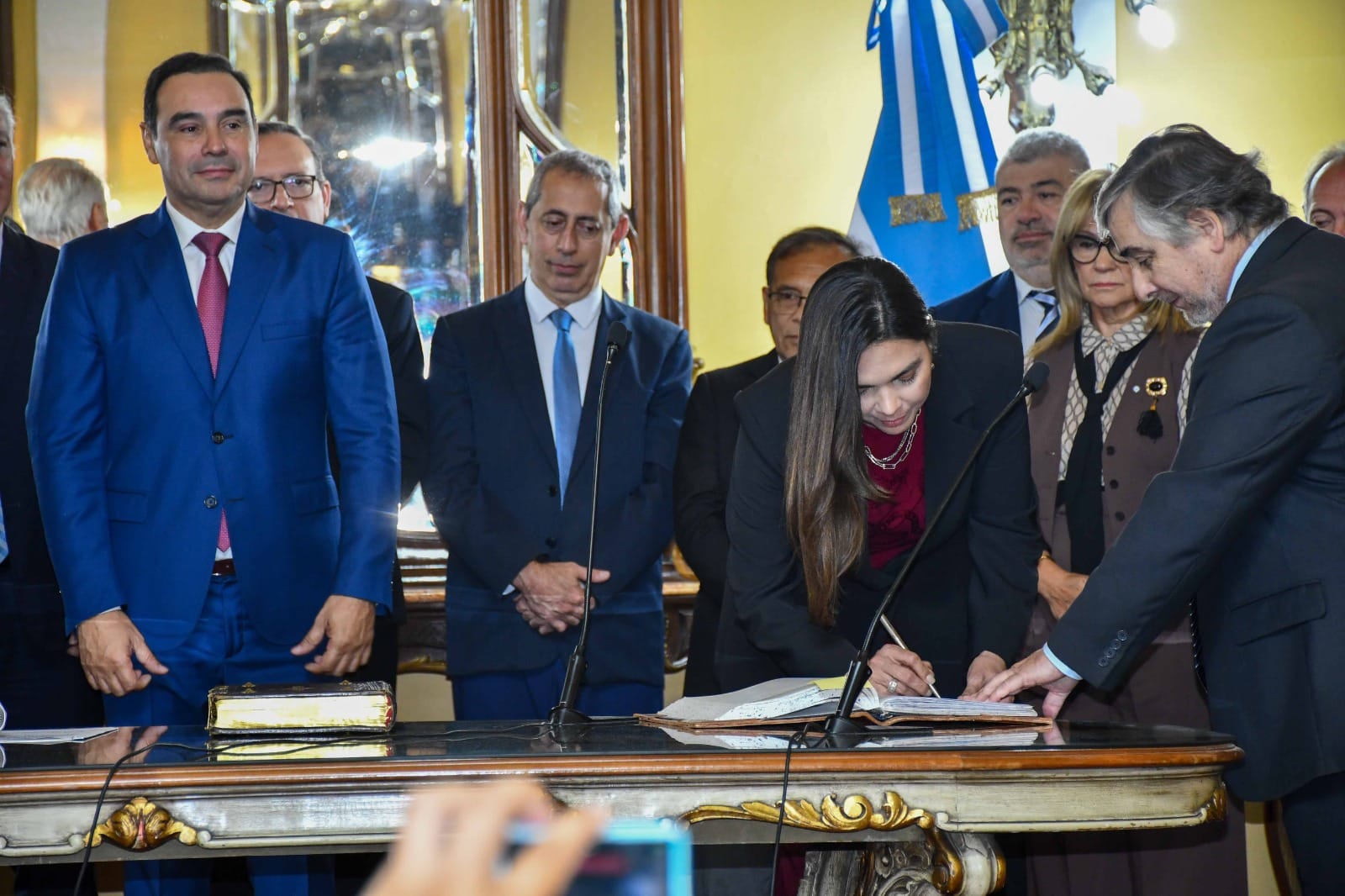 Luego, el escribano mayor de Gobierno, Rolando Battilana, a cargo de la fiscalización del acto, leyó el acta correspondiente, tras lo cual el gobernador Valdés tomó juramento de ley de posesión del cargo a la flamante titular de la Cartera.