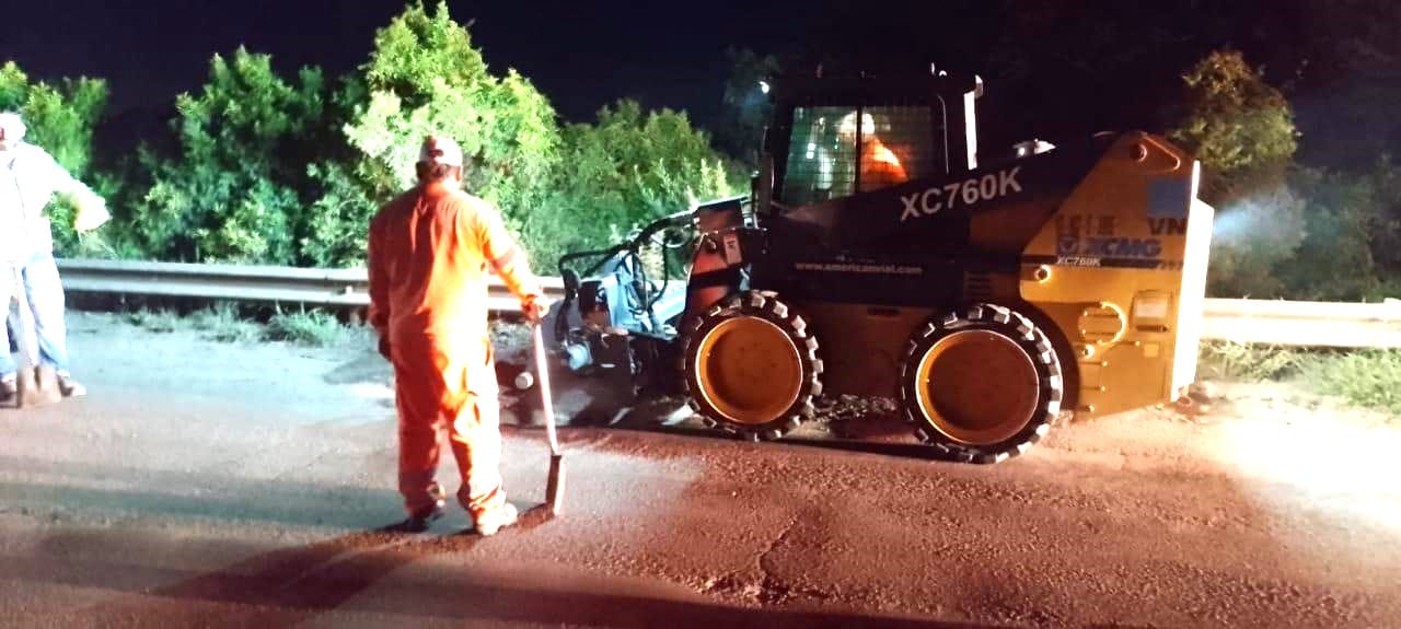 Entre las tareas realizadas se destacan la colocación de tachas reflectivas para delimitar el eje de calzada, y el bacheo en el viaducto y en la bajada, en el sector de ingreso al Centro de Frontera.