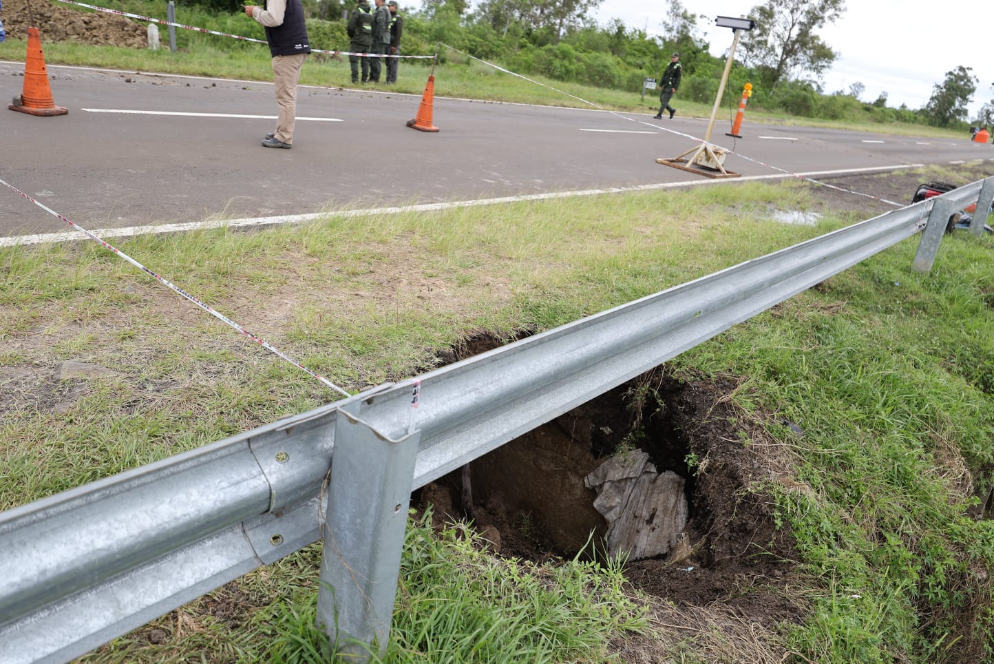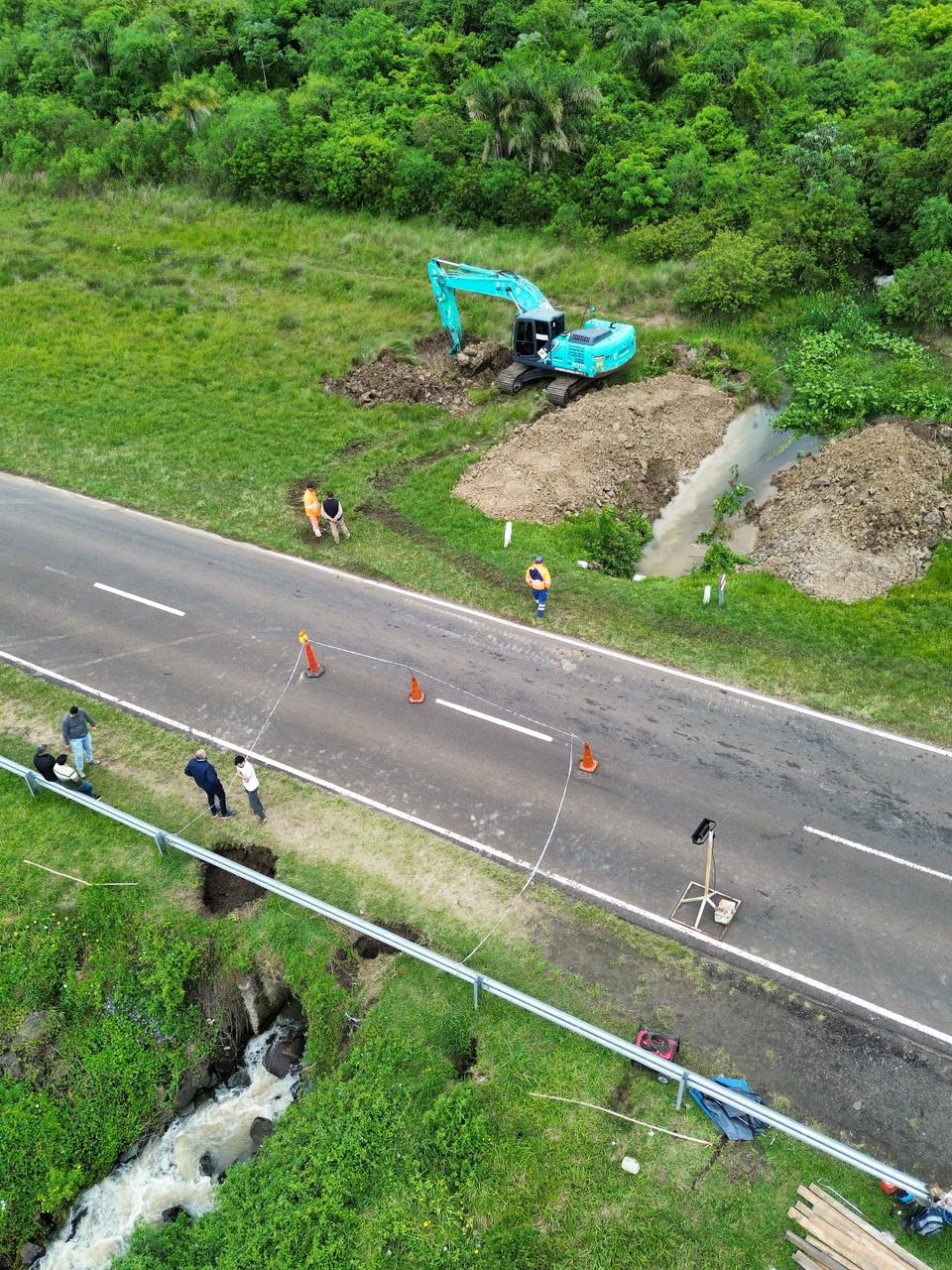 Un equipo de la Dirección Provincial de Vialidad (DPV), dependiente del Ministerio de Obras y Servicios Públicos de la Provincia de Corrientes se trasladó hoy a las inmediaciones del Km 1.187, en cercanías a Itá Ibaté, para realizar de inmediato trabajos sobre la Ruta Nacional (RN) Nº12, actualmente cerrada debido al socavón registrado en una alcantarilla.