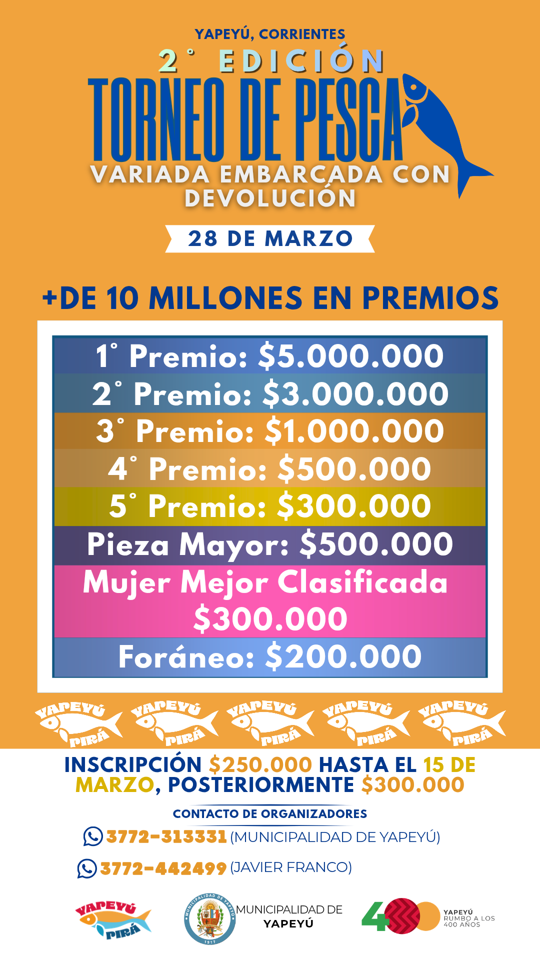 El evento es organizado por el Municipio de Yapeyú junto al grupo de pescadores Yapeyú Pirá, y contará con importantes premios en efectivo que buscan atraer a competidores de toda la región.