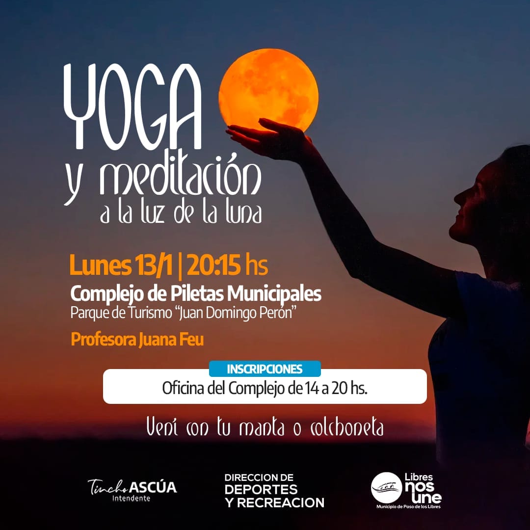 El Municipio de Paso de los Libres, a través de la Dirección de Deportes y Recreación, invita a la comunidad a participar de una actividad especial de yoga y meditación bajo la luz de la luna, una experiencia única para conectar cuerpo y mente en un ambiente natural.